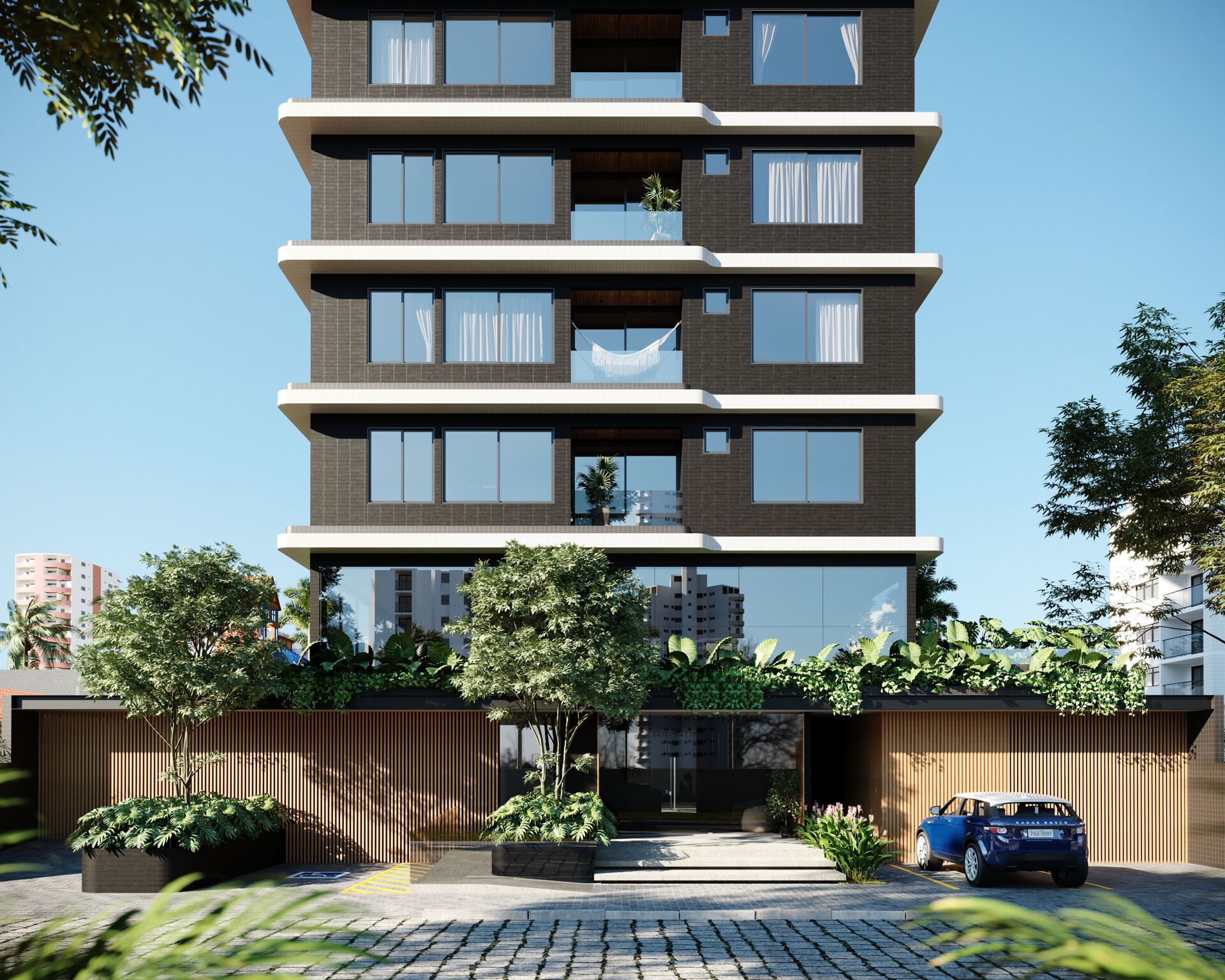 - Fachada com arquitetura moderna